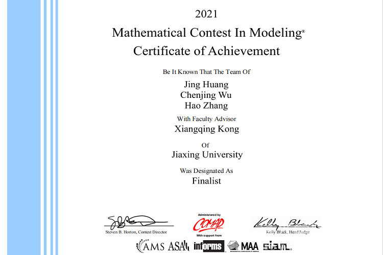 日前,2021年美国老员工数学建模竞赛(MCM/ICM)结果揭晓,公司派出的8支队伍全部获奖。其中,由数学181班黄婧、吴陈静和金融数学181班张浩三位同学组成的参赛队获特等奖提名(Finalist),另有2支队伍获一等奖(Meritorious Winner),1支队伍获二等奖(Honorable Mention),4支队伍获成功参赛奖(Successful Participant)。