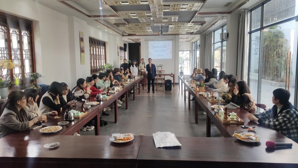 3月9日下午,公司女教职工齐聚梅花洲茶艺馆,由国家一级茶艺师为大家讲解茶文化、茶礼仪等知识,并演示烫杯、拨茶、高冲、盖沫、奉茶等一系列茶艺技巧,在场女教职工跃跃欲试,品茗香学礼仪,脸上洋溢着幸福的微笑。
